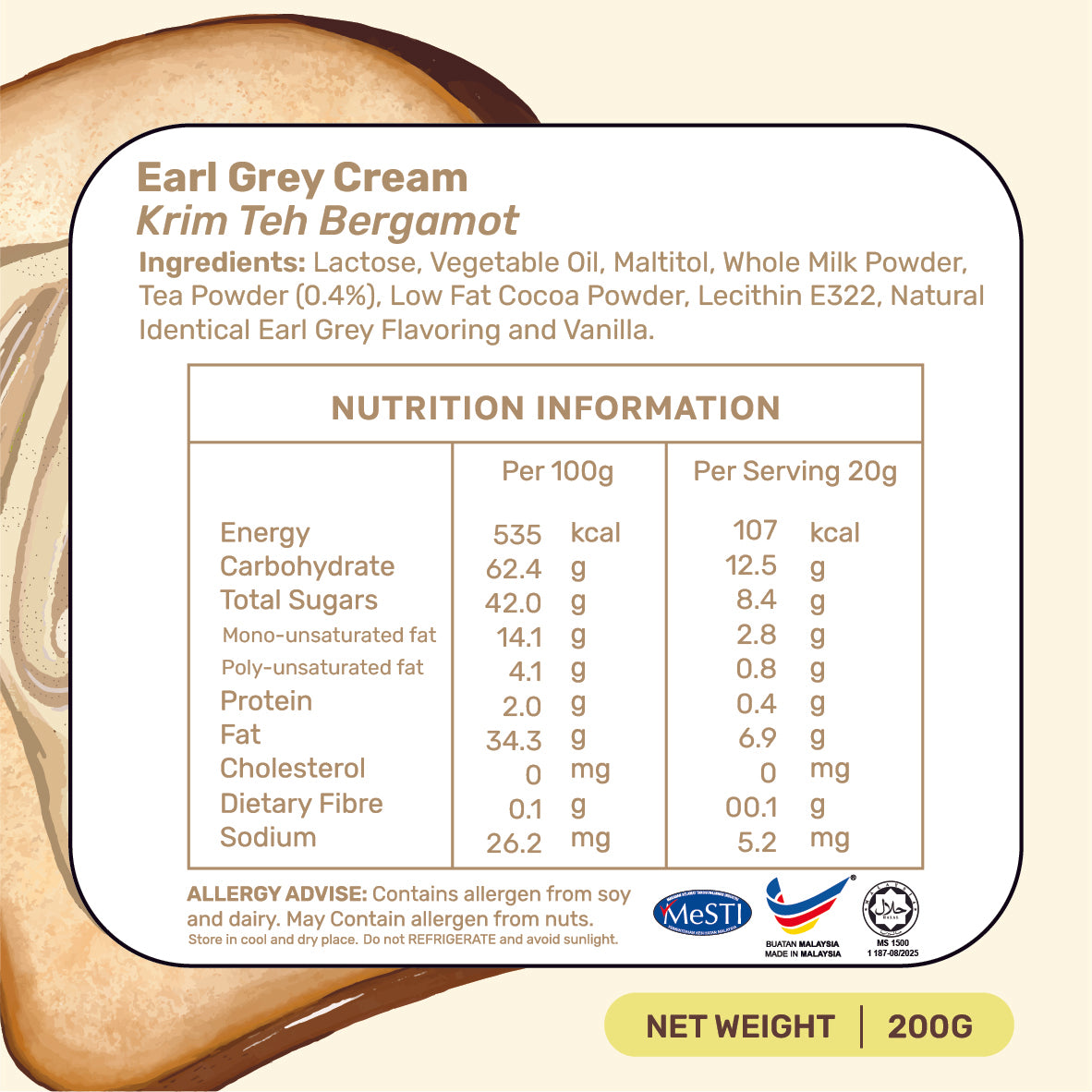 Elegant & Aromatic ☕ Infused with natural bergamot and premium tea powder, this spread offers a sophisticated, floral aroma. It’s the perfect companion for a refined afternoon tea.